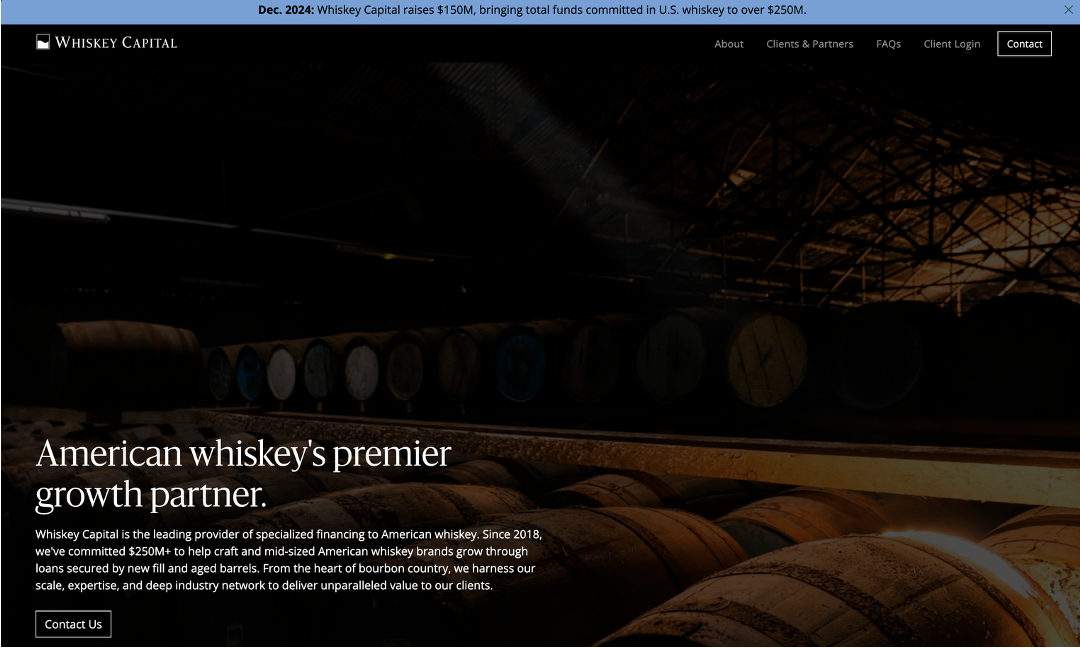 That disconnect, observed repeatedly while supporting names like JW Rutledge and Southern Distilling through capital raise efforts around 2017 and 2018, became the foundation for Whiskey Capital, the firm's private credit fund focused on direct lending to producers.